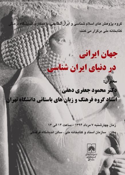 سومین نشست گروه پژوهشهای اسلامشناسی و ایرانشناسی در سال 94، با عنوان «جهان ایرانی در دنیای ایرانشناسی» با سخنرانی محمود جعفری دهقی، عضو هیئت علمی گروه فرهنگ و زبانهای باستانی دانشگاه تهران در تاریخ 94/5/6 در سالن اندیشگاه فرهنگی سازمان اسناد و کتابخانه ملی جمهوری اسلامی برگزار شد.