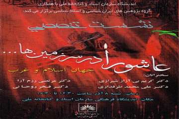 نشست تخصصی با عنوان «عاشورا در سرزمین ها» با دو موضوع «عاشورا در جهان اسلام و غرب» و «عاشورا در شبه قاره هند» با حضور دکتر عبدالکریم بی آزار شیرازی، دکتر محمد رضا فخر روحانی، دکتر علی محمد طرفداری و دکتر مرتضی رزم آرا در تاریخ 93/9/8برگزار شد.