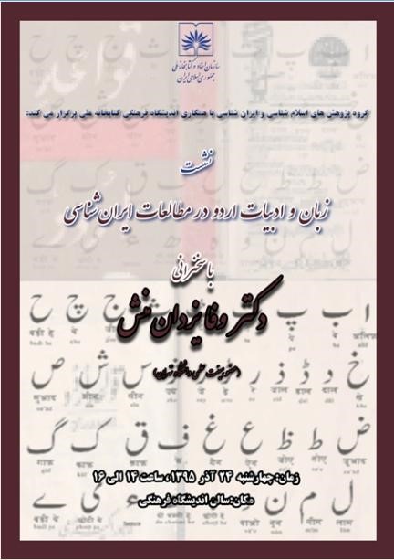 در ادامه جلسه خانم دکتر یزدان منش به صحبت پرداخت و گفت: زبان اردو از نظر گفتاری با اندکی اختلاف، همان زبان هندیست، اما رسم الخط آن بر مبنای زبان های فارسی و عربی برگزیده شده است. زبان اردو در متون ادبی، تاریخی و مذهبی با بسیاری از واژگان و عناصر زبان فارسی و عربی تلفیق یافته، اما در متون داستانی و زبان روزمره بیشتر با زبان هندی قرابت دارد. وی سپس ادامه داد: با نفوذ زبان فارسی در شبه قاره هند، متون تاریخی و ادبی فارسی در آن خطه شکوفا شده و رشد کرده و موجب پیدایش شعر اردو می شود که اغلب آنها برگرفته از قالب ها و مضامین شعرهای فارسی است. اما با نفوذ انگلیسی ها در شبه قاره هند و تلاش آن ها برای کمرنگ کردن زبان و فرهنگ زبان فارسی در شبه قاره هند، برگردان داستان های نامی فارسی به اردو آغاز شد و بدین ترتیب با این ترجمه ها فرهنگ شبه قاره جایگزین فرهنگ ایرانی شده و زبان فارسی و فرهنگ همراه آن به حاشیه رفت.