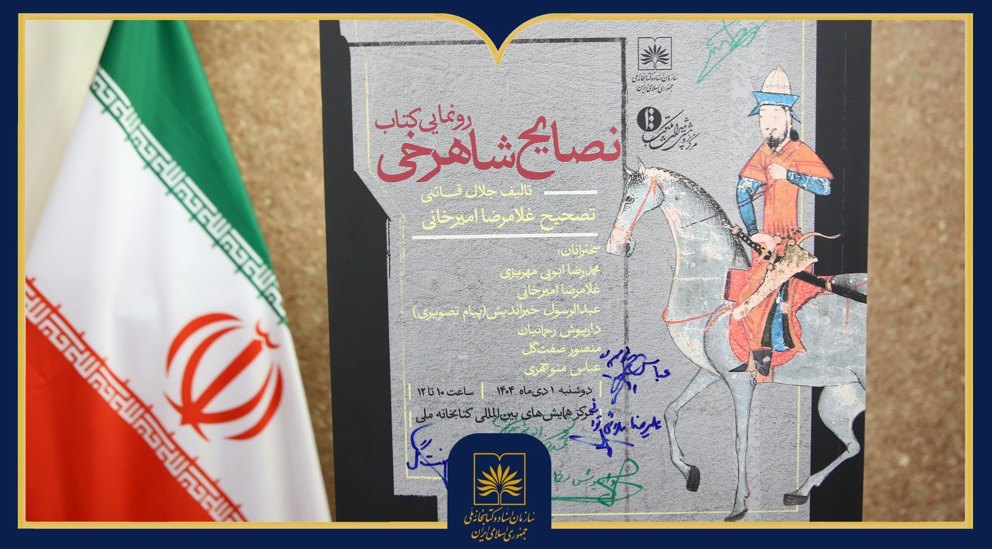 به گزارش روابط‌عمومی سازمان اسناد و کتابخانه ملی ایران، نشست تخصصی تاریخ عصر تیموریان و مراسم رونمایی از کتاب «نصایح شاهرخی» روز دوشنبه ۱ دی‌ماه ۱۴۰۴ از ساعت ۱۰ تا ۱۲ در مرکز همایش‌های بین‌المللی این سازمان برگزار شد.