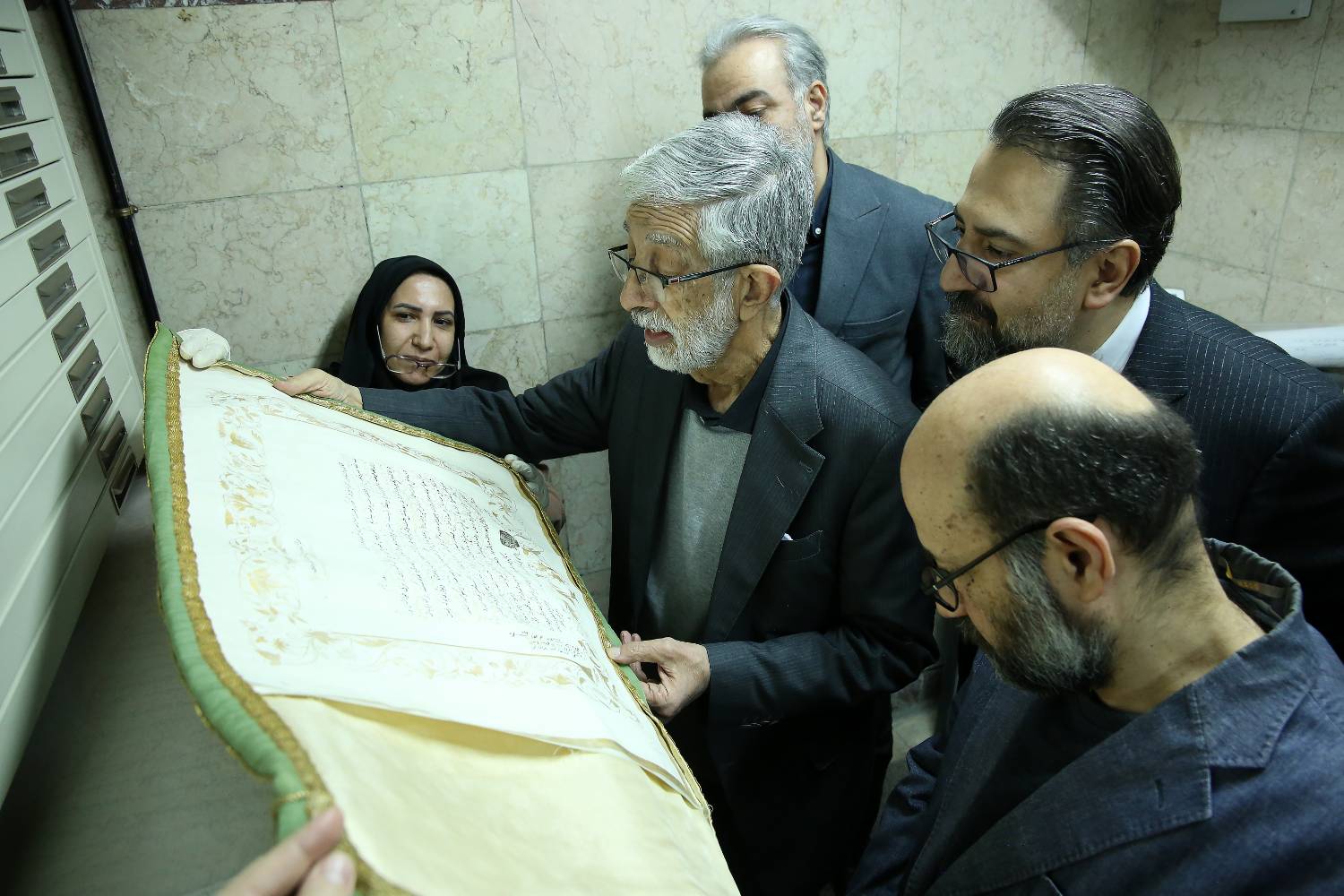بازدید غلامعلی حداد عادل از گنجینه سازمان اسناد و کتابخانه ملی ایران