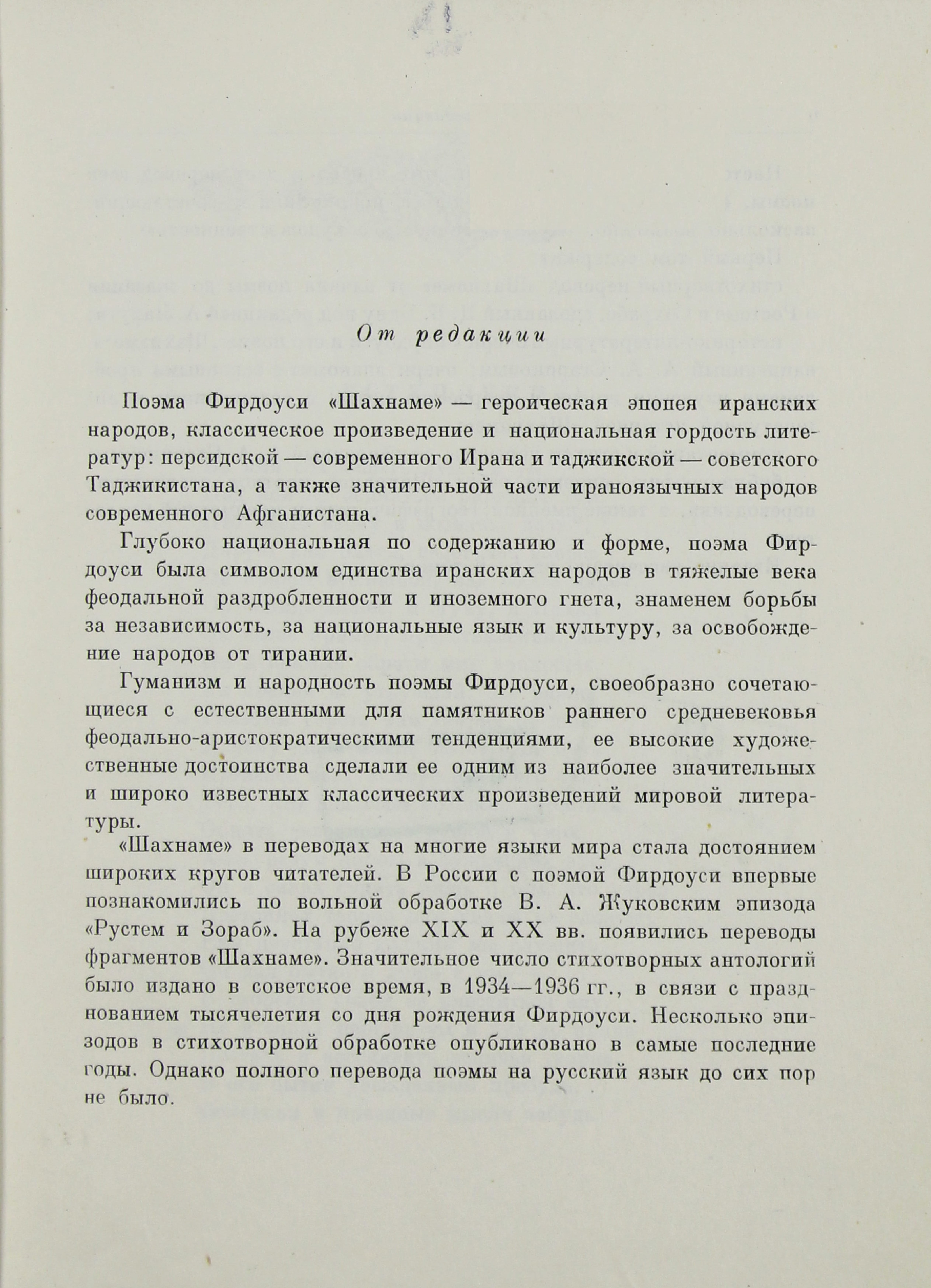 این ترجمه به دلیل وفاداری به ساختار شاهنامه، زبان روان و پشتوانه علمی مترجمان، یکی از شاخص‌ترین نمونه‌های ترجمه آثار کلاسیک فارسی به زبان‌های اروپایی به شمار می‌رود. این اثر، جایگاهی ممتاز در مطالعات تطبیقی ادبیات و ایران‌شناسی در حوزه زبان روسی دارد و نسخه کامل آن با شماره کتابشناسی 4185-75 م در مخزن گروه ایران‌شناسی و اسلام‌شناسی کتابخانه ملی نگهداری می‌شود.