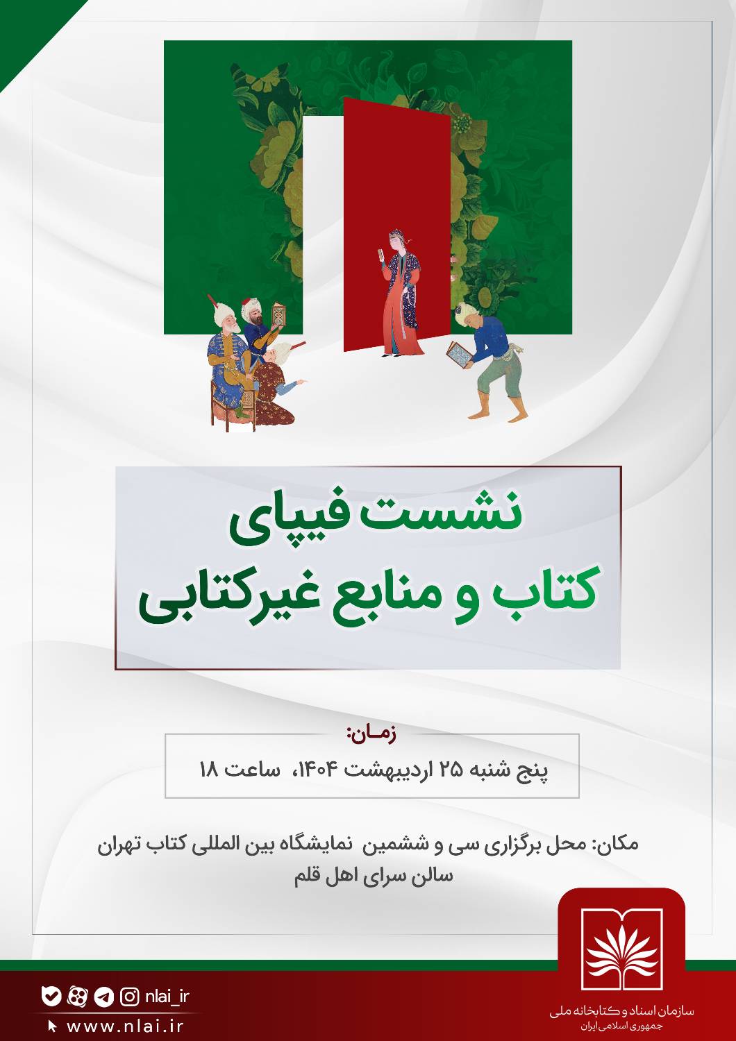 به گزارش روابط عمومی سازمان اسناد و کتابخانه ملی ایران، نشست تخصصی «فِیپای کتابی و غیرکتابی» با هدف بررسی چالش‌ها، تجربیات و تبادل دیدگاه‌ها در حوزه فهرست‌نویسی پیش از انتشار، روز پنج‌شنبه ۲۵ اردیبهشت‌ماه ۱۴۰۴ از ساعت ۱۸ در سالن سرای اهل قلم نمایشگاه بین‌المللی کتاب تهران برگزار می‌شود.