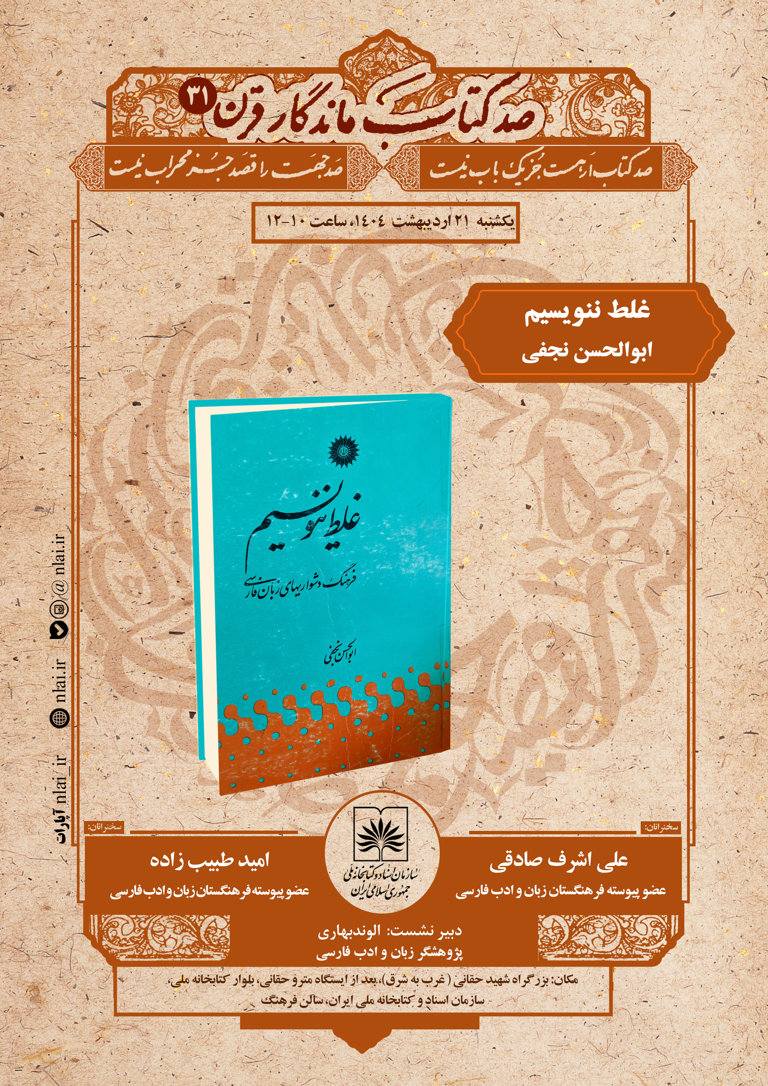 کتاب «غلط ننویسیم» اثر ماندگار ابوالحسن نجفی، در سی و یکمین نشست از سلسله نشستهای «صد کتاب ماندگار قرن» در سازمان اسناد و کتابخانه ملی ایران معرفی و بررسی خواهد شد.