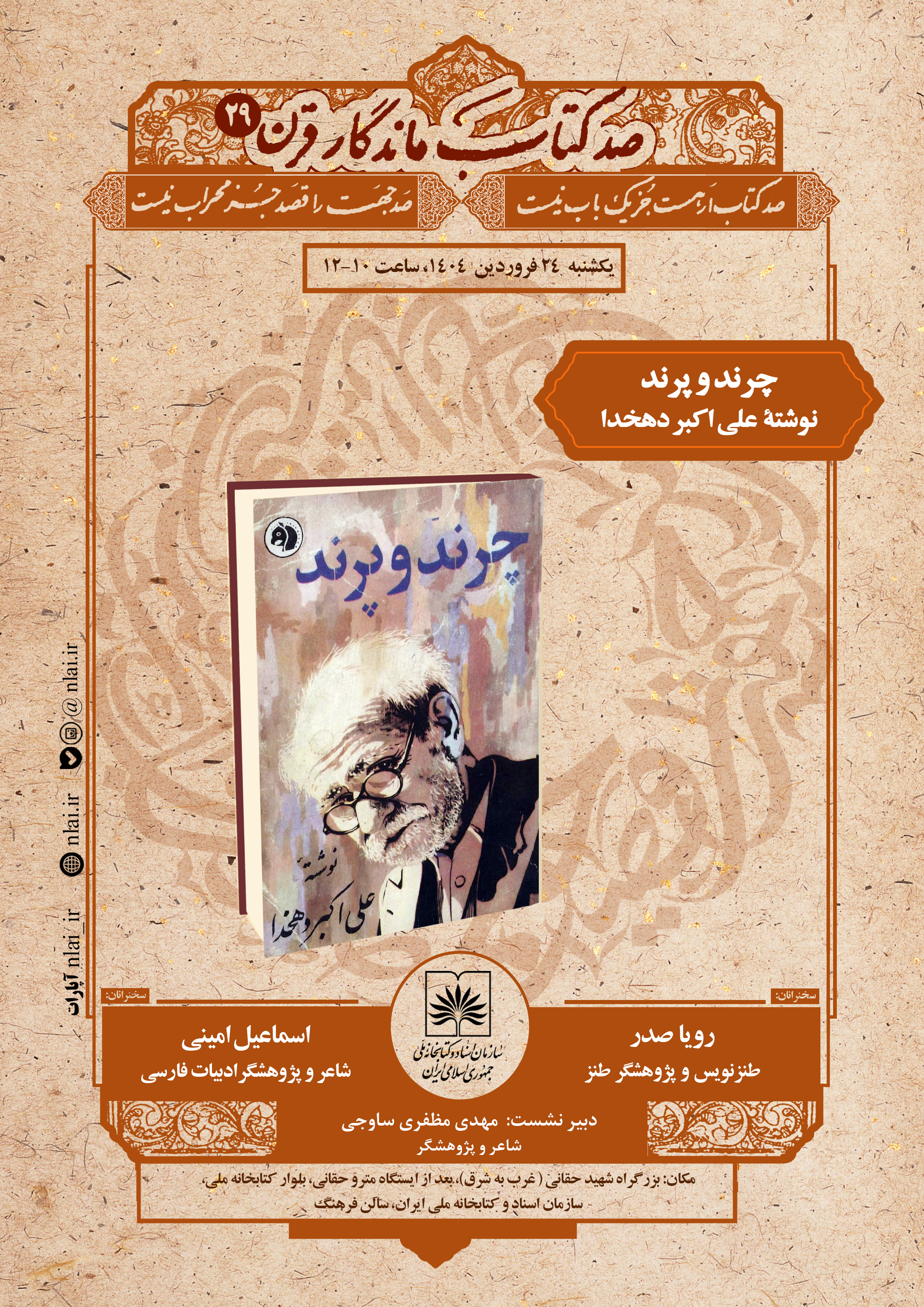 به گزارش روابط عمومی سازمان اسناد و کتابخانه ملی ایران، این کتاب که از برجسته‌ترین نمونه‌های طنز اجتماعی و انتقادی دوران مشروطه به‌شمار می‌رود، در این نشست مورد تحلیل و بررسی قرار خواهد گرفت. «چرند و پرند» با نگاهی طنزآلود اما ژرف، به آسیب‌ها و نابسامانی‌های سیاسی، اجتماعی و فرهنگی عصر خود پرداخته و با بهره‌گیری از زبان عامیانه، ضرب‌المثل‌ها و کنایات رایج، تصویری انتقادی، پرمفهوم و ماندگار از جامعه ایران در آستانه قرن جدید ارائه می‌دهد.