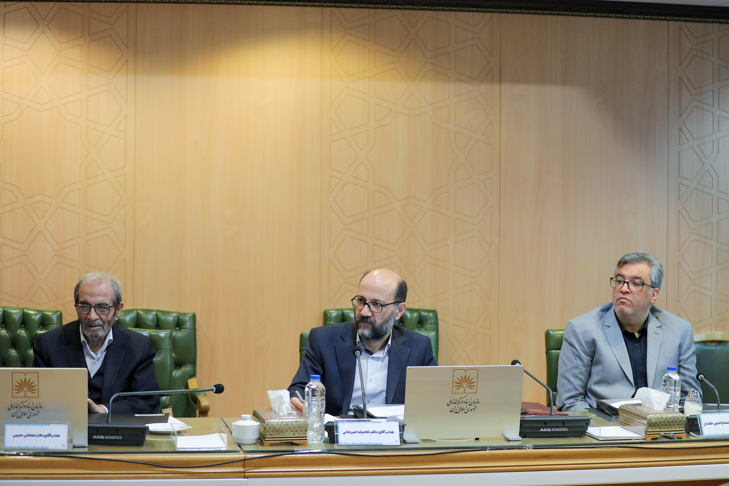 هشتاد و هشتمین جلسه هیات امنای سازمان اسناد و کتابخانه ملی ایران، با حضور دکتر محمدرضا عارف، معاون اول رئیس جمهور، دکترغلامرضا امیر خانی،رئیس محترم سازمان اسناد و کتابخانه ملی ایران، دکتر سید عباس صالحی،وزیر محترم فرهنگ و ارشاد اسلامی، دکتر علیرضا کاظمی وزیر محترم آموزش و پرورش، دکتر حسین سیمایی صراف ،وزیر محترم علوم ، تحقیقات و فن آوری،دکتر نجفقلی حبیبی، عضو هیات امنای سازمان اسناد و کتابخانه ملی ایران،دکتر سید مصطفی محقق داماد، عضو هیات امنای سازمان اسناد و کتابخانه ملی ایران، در تالار سخن سازمان اسناد و کتابخانه ملی ایران برگزار شد.