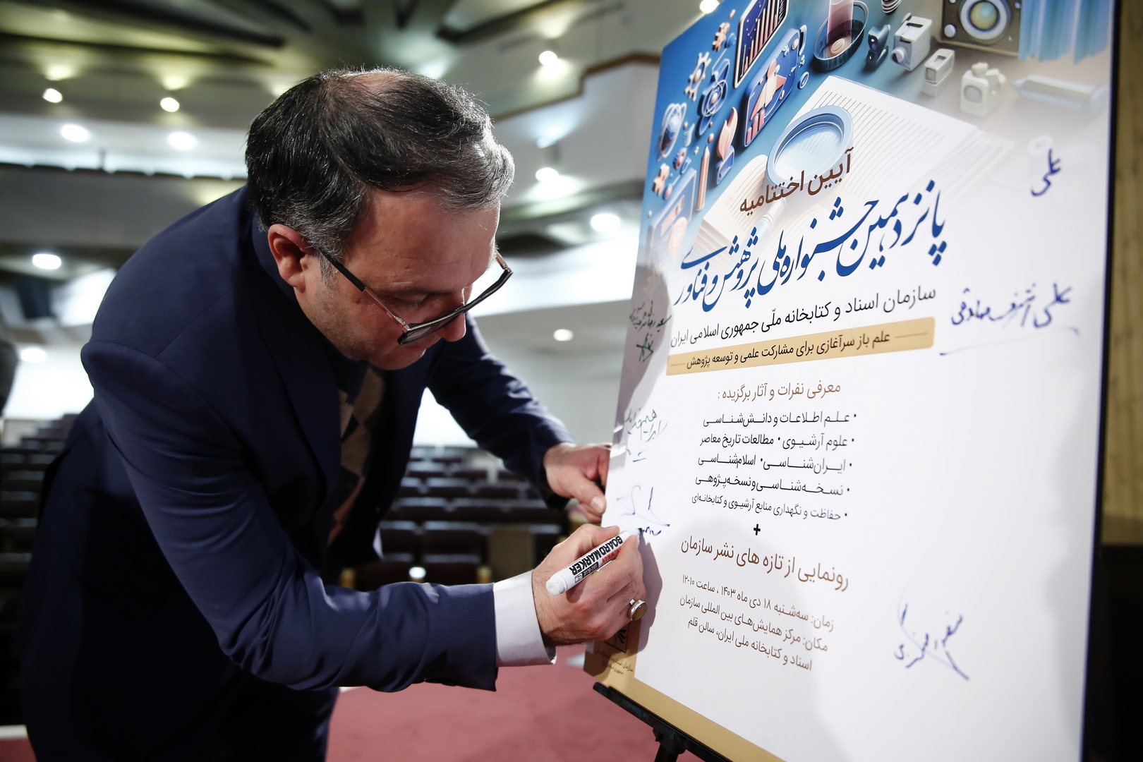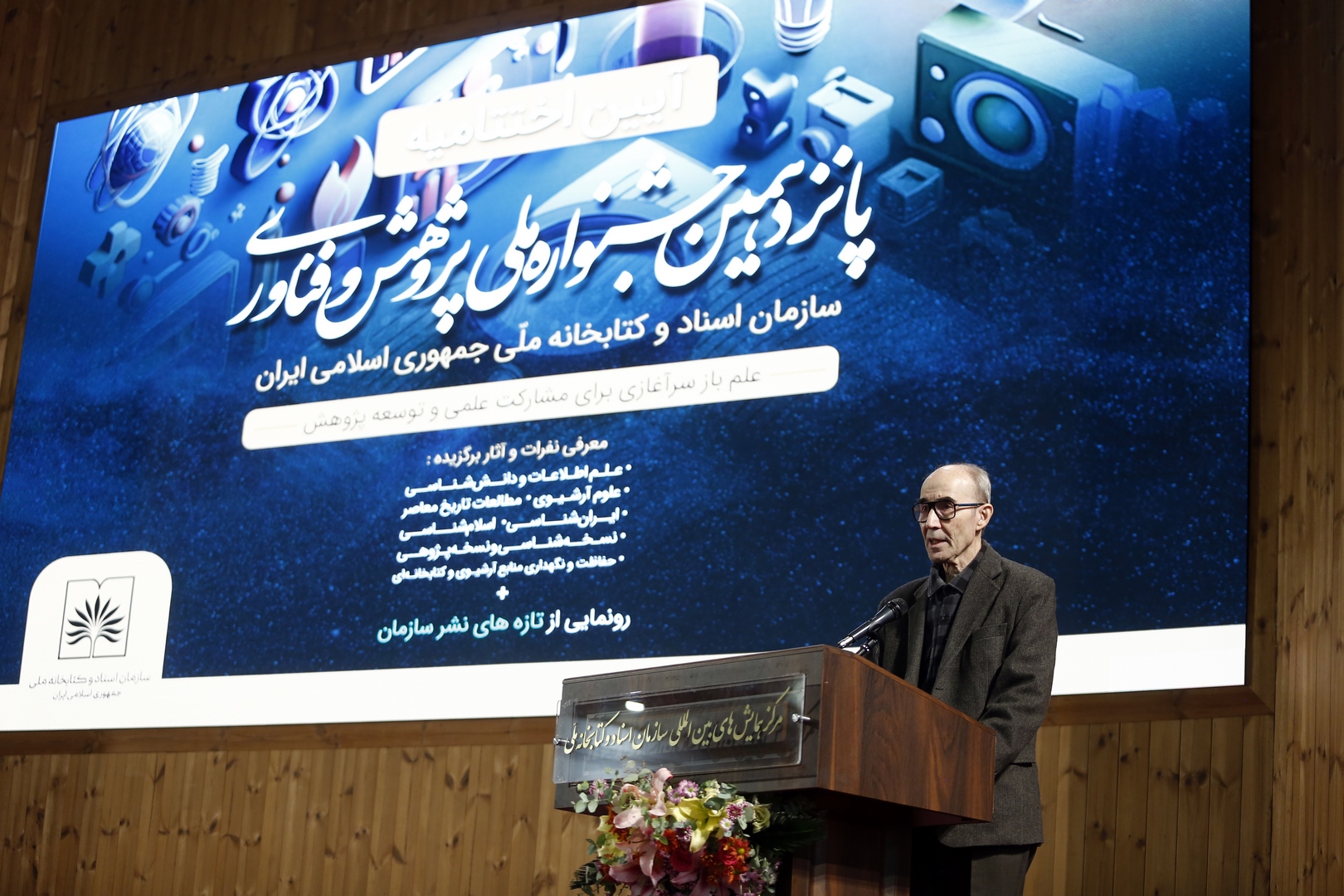 آیین اختتامیه پانزدهمین جشنواره پژوهش و فناوری سازمان اسناد و کتابخانه ملی ایران با حضور جمعی از پژوهشگران، اساتید برجسته و علاقهمندان به علم و پژوهش، در تالار قلم سازمان اسناد و کتابخانه ملی ایران برگزار شد. این مراسم با رونمایی از دو کتاب جدید و تقدیر از برگزیدگان برتر جشنواره همراه بود.