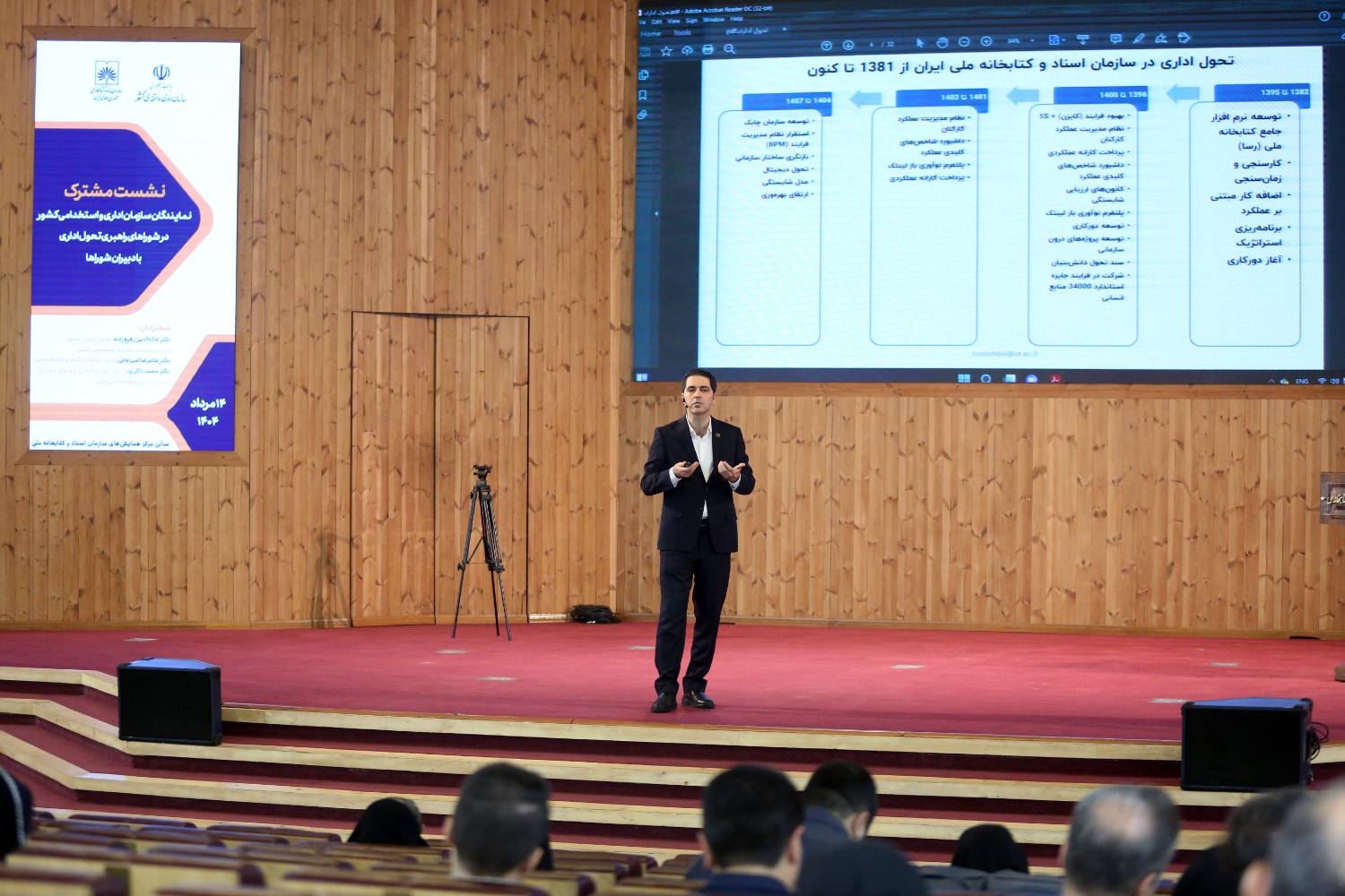 این نشست با سخنرانی علاءالدین رفیعزاده معاون رئیسجمهور و رئیس سازمان اداری و استخدامی کشور، غلامرضا امیرخانی رئیس سازمان اسناد و کتابخانه ملی ایران، محمد ذاکری رئیس امور برنامهریزی و نوآوری اداری سازمان اداری و استخدامی کشور و با حضور جمعی از مدیران، دبیران شوراها و کارشناسان حوزه تحول اداری برگزار شد.