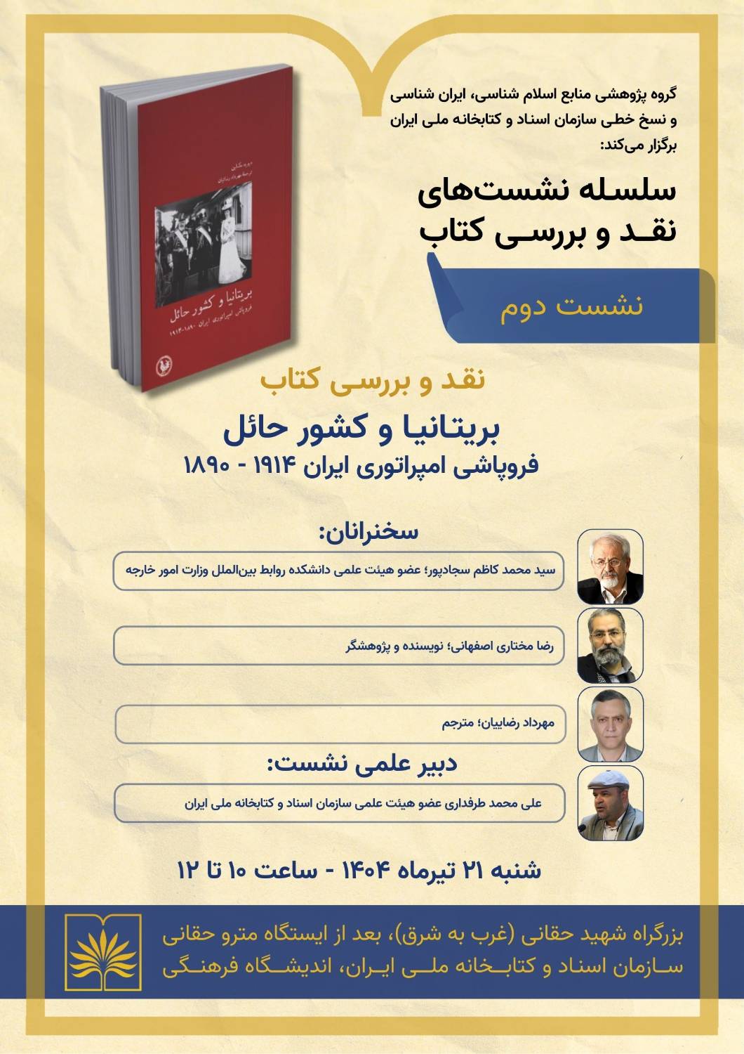 کتاب «بریتانیا و کشور حائل» در اندیشگاه کتابخانه ملی ایران به بوته نقد گذاشته میشود.