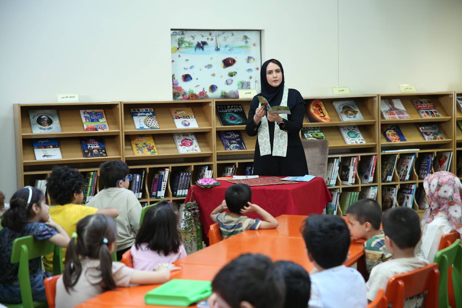 ‌نخستین جلسه از کارگاه‌های «سفر به دنیای داستان‌ها» و «نقاشی خیال‌انگیز» ویژه گروه سنی ۶ تا ۱۰ سال، در کتابخانه کودکان و نوجوانان سازمان اسناد و کتابخانه ملی ایران برگزار شد.