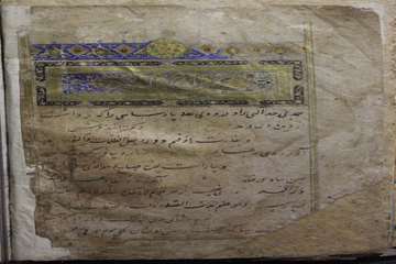 آغاز نسخه کتیبه مزین و مذهب ممتازی کشیده شده که درون آن بسمله به خط کوفی تزئنین زرین در زمینه ای از طلا با طیفی متفاوت کتابت شده است. بالای کتیبه نواری شامل یک شمسه بزرگ در وسط و پنج ترنج کوچک در اطرافش نقش شده است. همه صفحات و نیز بین دو ستون اشعار با طلای محرر جدول کشی شده است. عناوین و آیات و احادیث و کلمات اشاره کننده به اشعار (مانند نظم و بیت و رباعی و مثنوی و...) به ترتیب با رنگ های زر و لاجورد و شنگرف رنگه نویسی شده اند لذا نسخه از لحاظ بصری و ترکیبات رنگی متنوع و چشم نواز است.