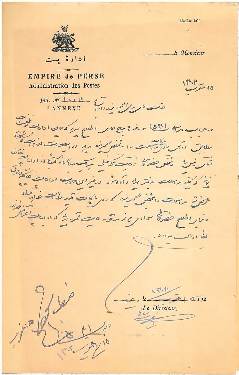 انتشار سندنامه اداره پست به مدعی العموم یزد در مورد لزوم درخواست کتبی مدعی العموم، رئیس عدلیه، و رئیس محکمه صلحیه برای ارسال مراسلات به دفتر عدلیه به مناسبت 19 مهر ماه، روز جهانی پست توسط سازمان اسناد و کتابخانه ملی استان یزد