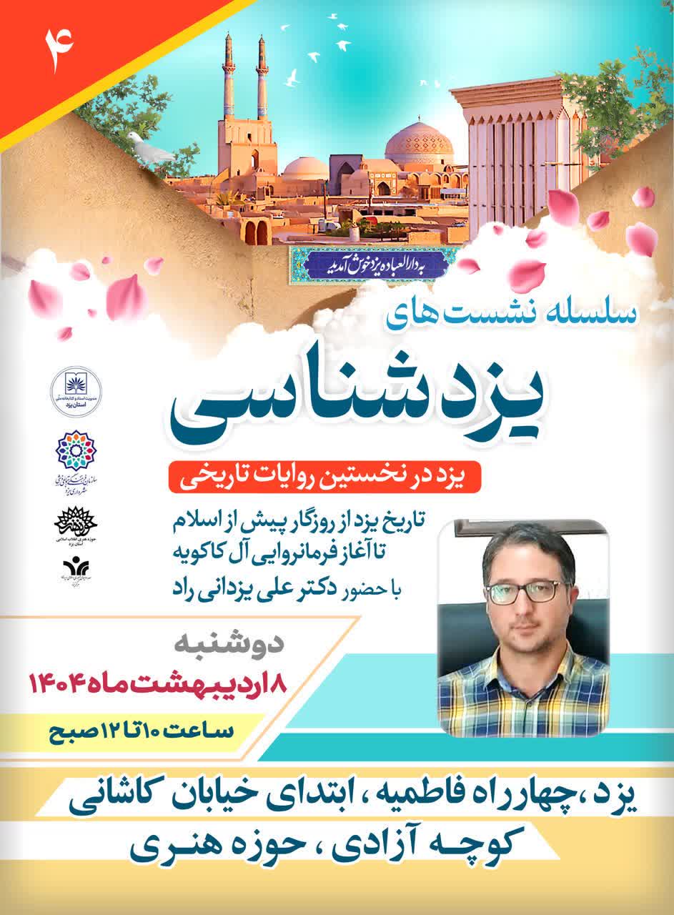 چهارمین نشست تخصصی یزد شناسی با موضوع تاریخ یزد از روزگار پیش از اسلام تا آغاز فرمانروایی آل کاکویه به همت مدیریت اسناد و کتابخانه ملی استان یزد و سازمان فرهنگی، اجتماعی، ورزشی شهرداری در محل حوزه هنری برگزار گردید.