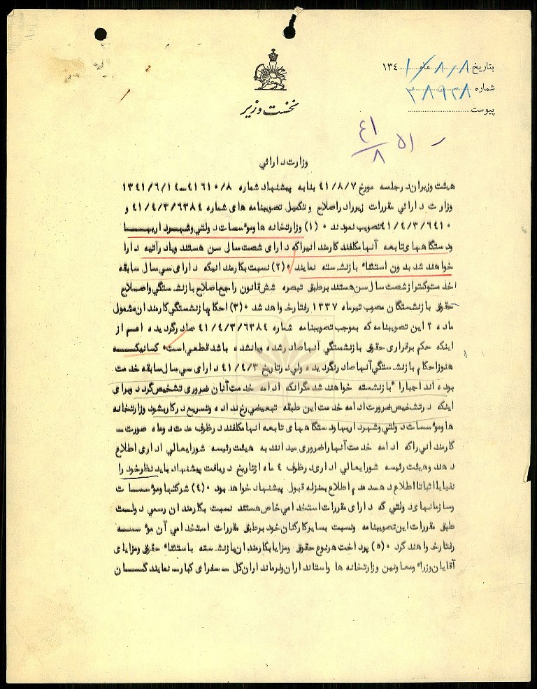 - عنوان سند : ابلاغ تصویبنامه هیئتوزیران، در خصوص مقررات بازنشستگی