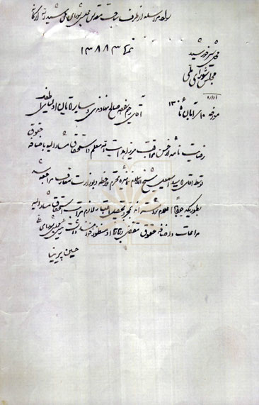 - تاریخ سند : ۱۳۰۶/۰۸/۱۰