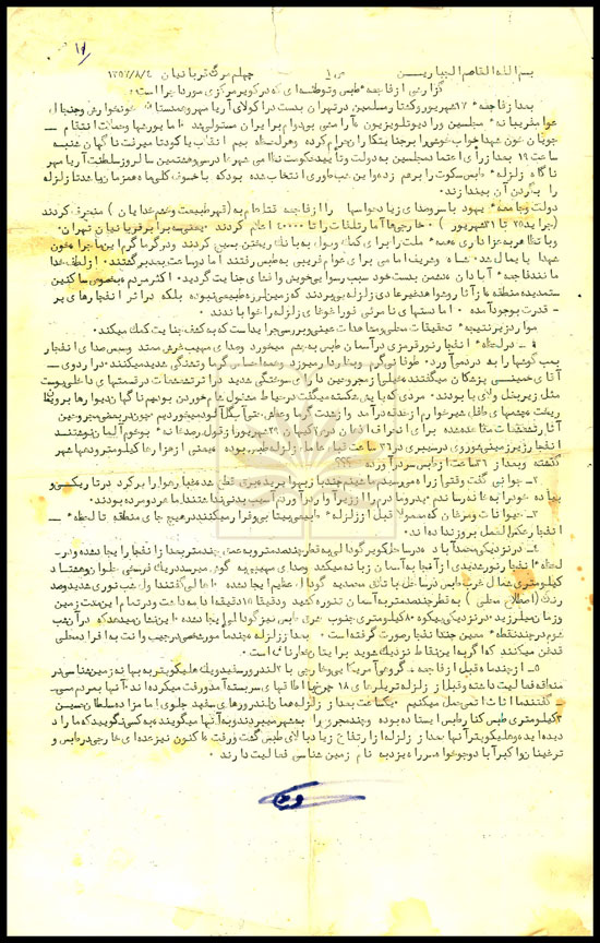 اعلاميه به مناسبت چهلم مرگ قربانيان زلزلة طبس با عنوان «گزارشي از فاجعة طبس و توطئهاي كه در كوير مركزي مورد اجرا است»