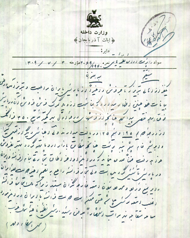 - تاریخ سند : ۱۳۰۹/۰۷/۰۳