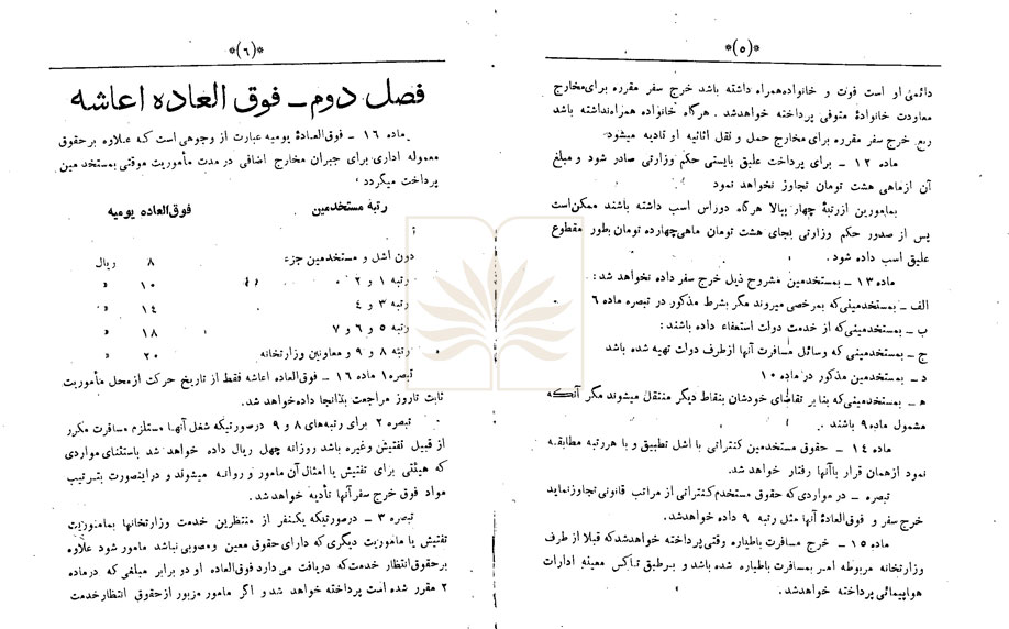نظام نامه مخارج مسافرت و فوقالعاده اعاشه(معاش) و انتقال كليه مأموران كشوری