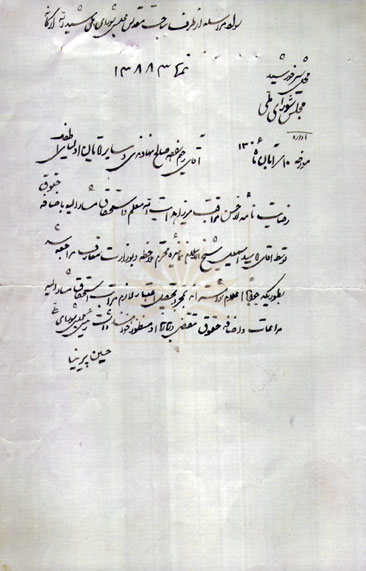 - تاریخ سند : ۱۳۰۶/۰۸/۱۰