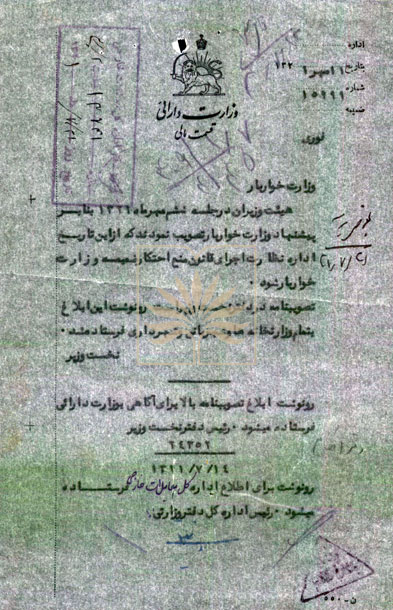 ابلاغ الحاق ادارۀ نظارت اجرای قانون منع احتکار به وزارت خواربار