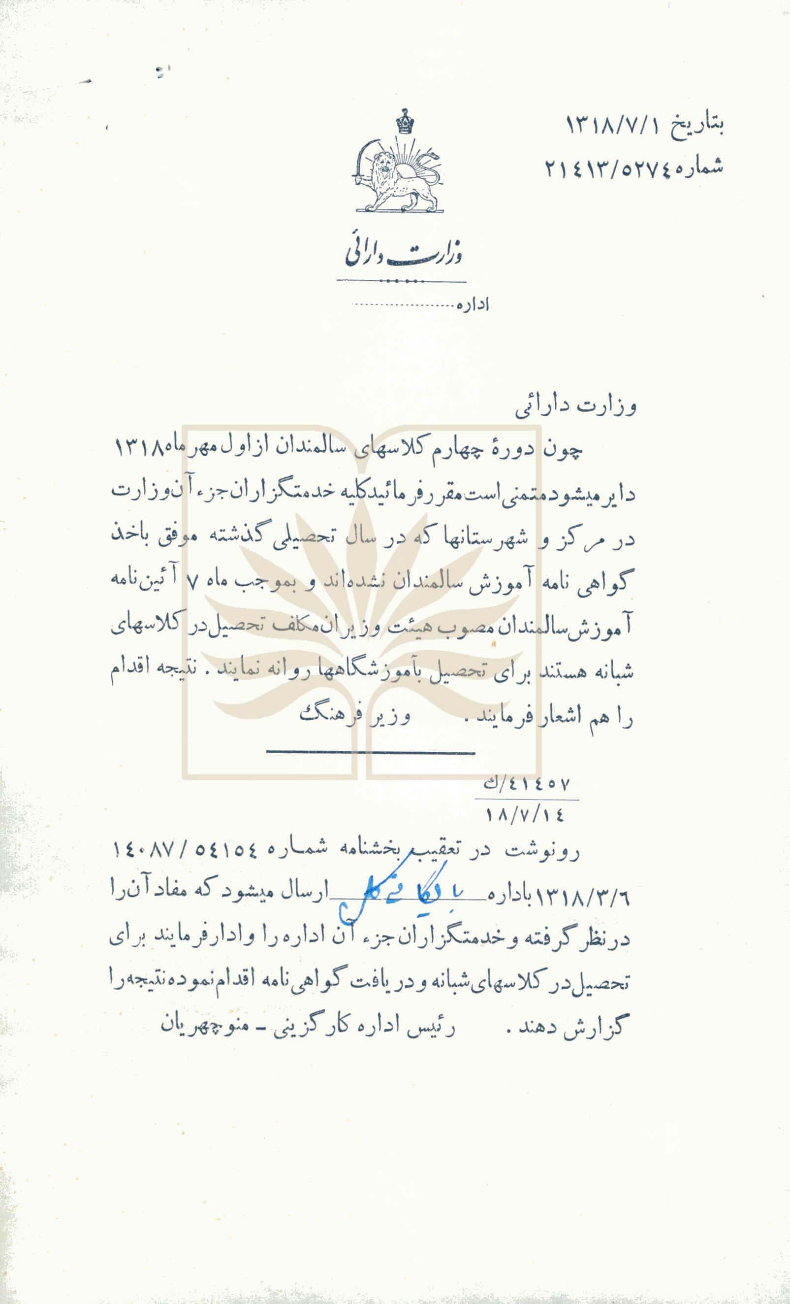 - تاریخ سند : ۱۳۱۸/۰۷/۰۱