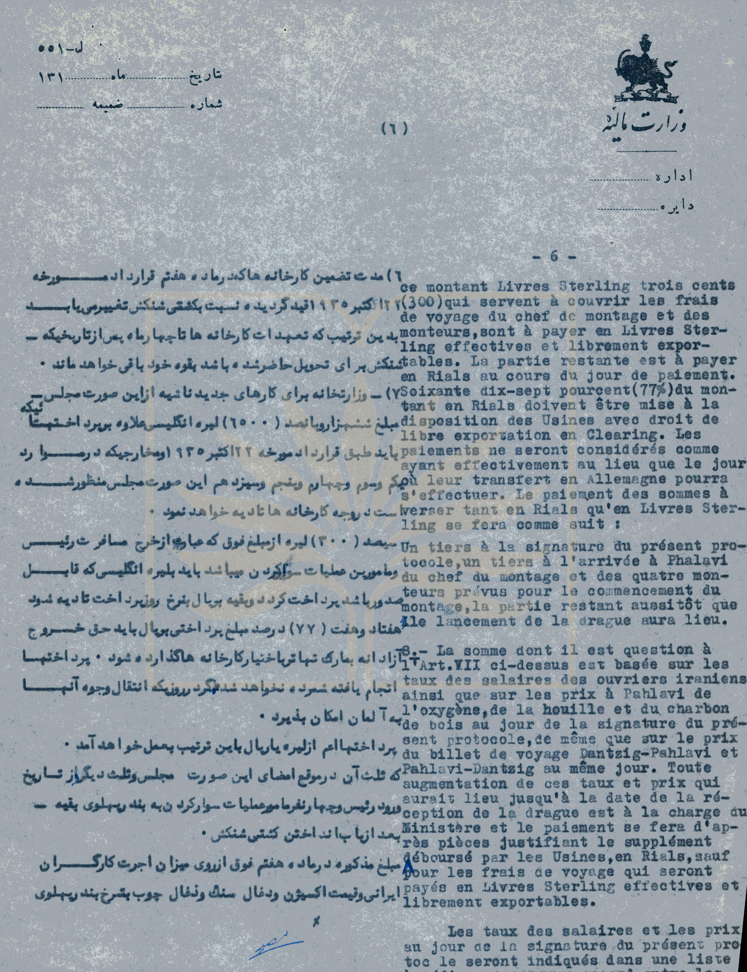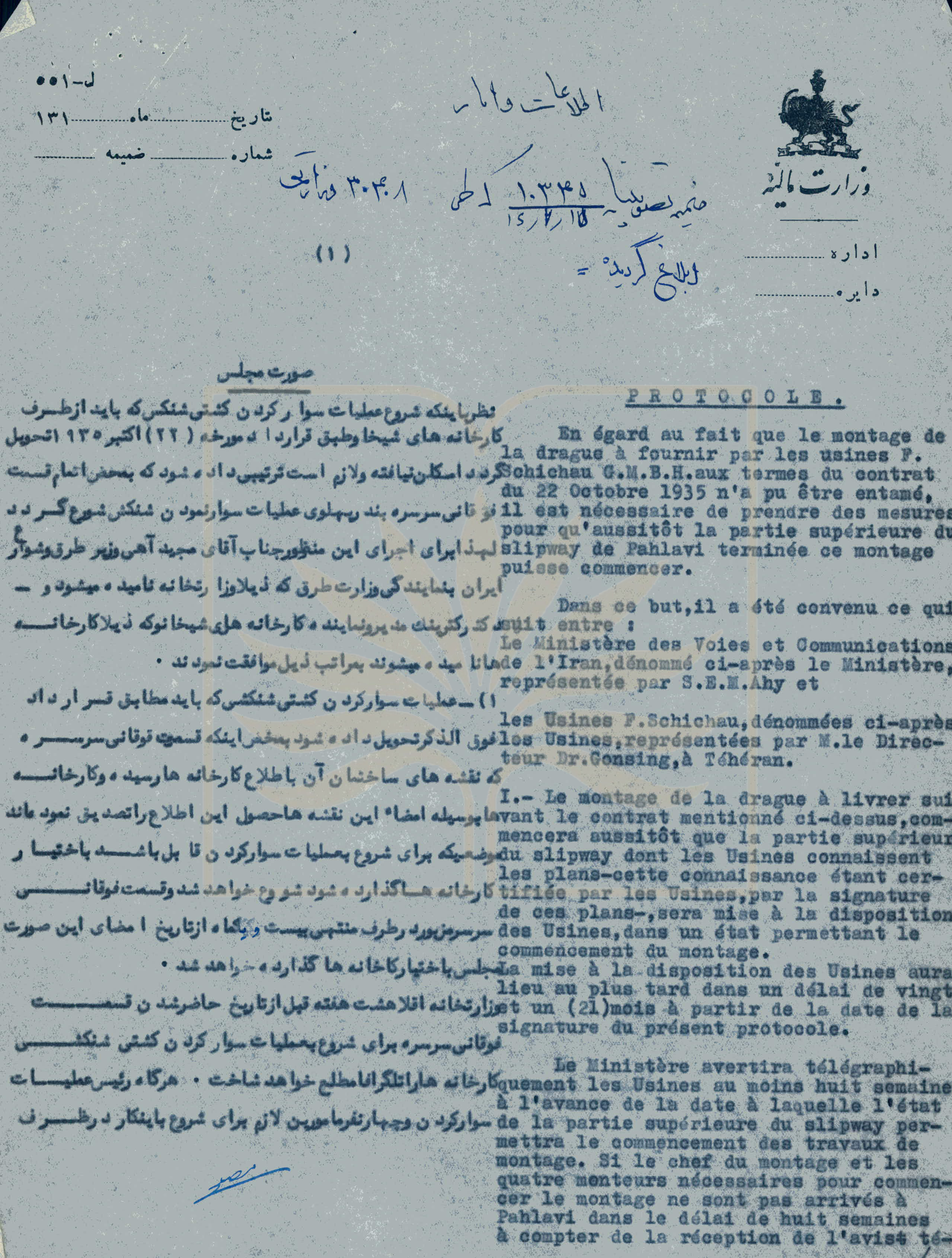 - عنوان سند : مصوبه ی هیئت وزیران، برای انجام عملیات سوار کردن کشتی «شنکس» در بندر پهلوی(انزلی)