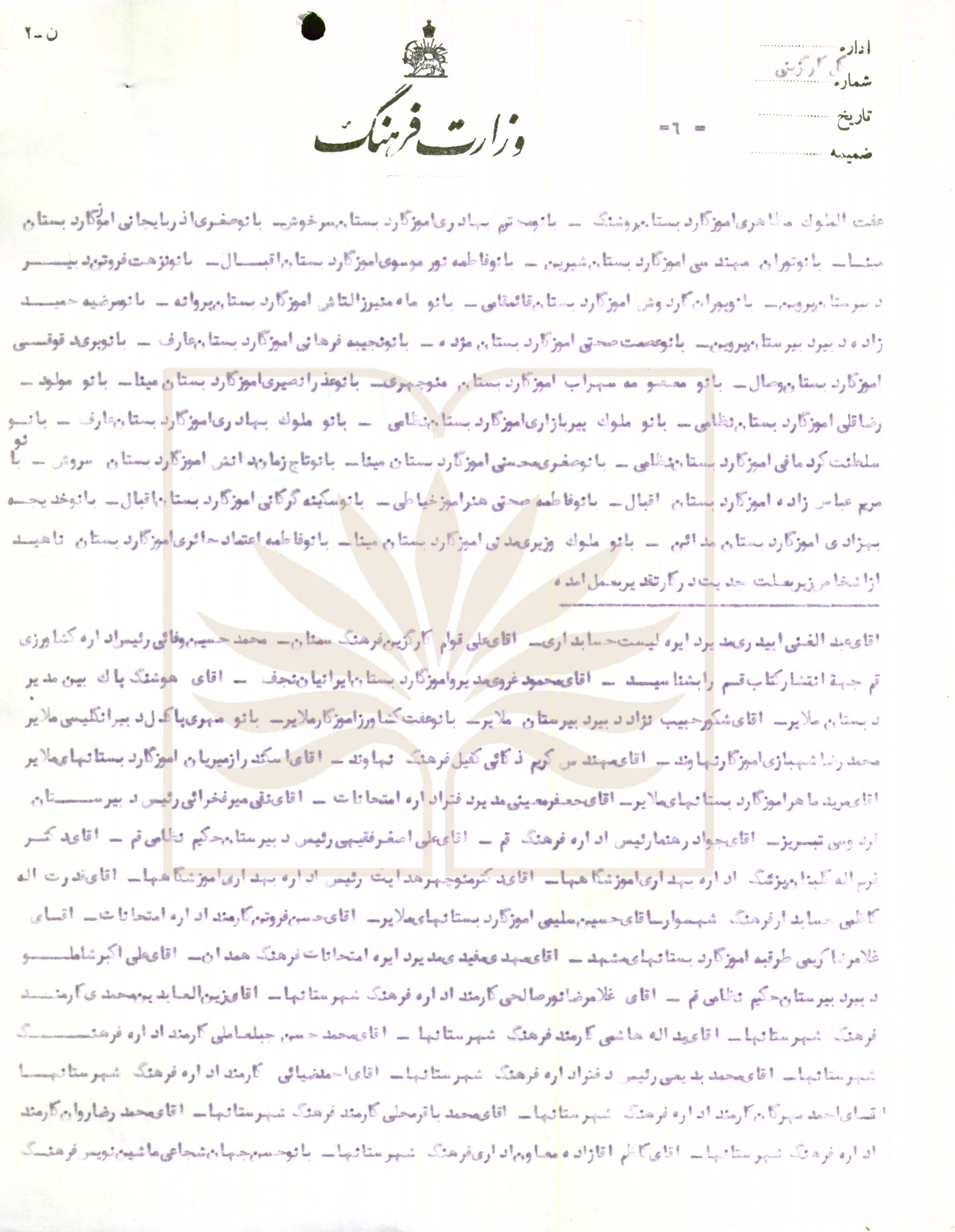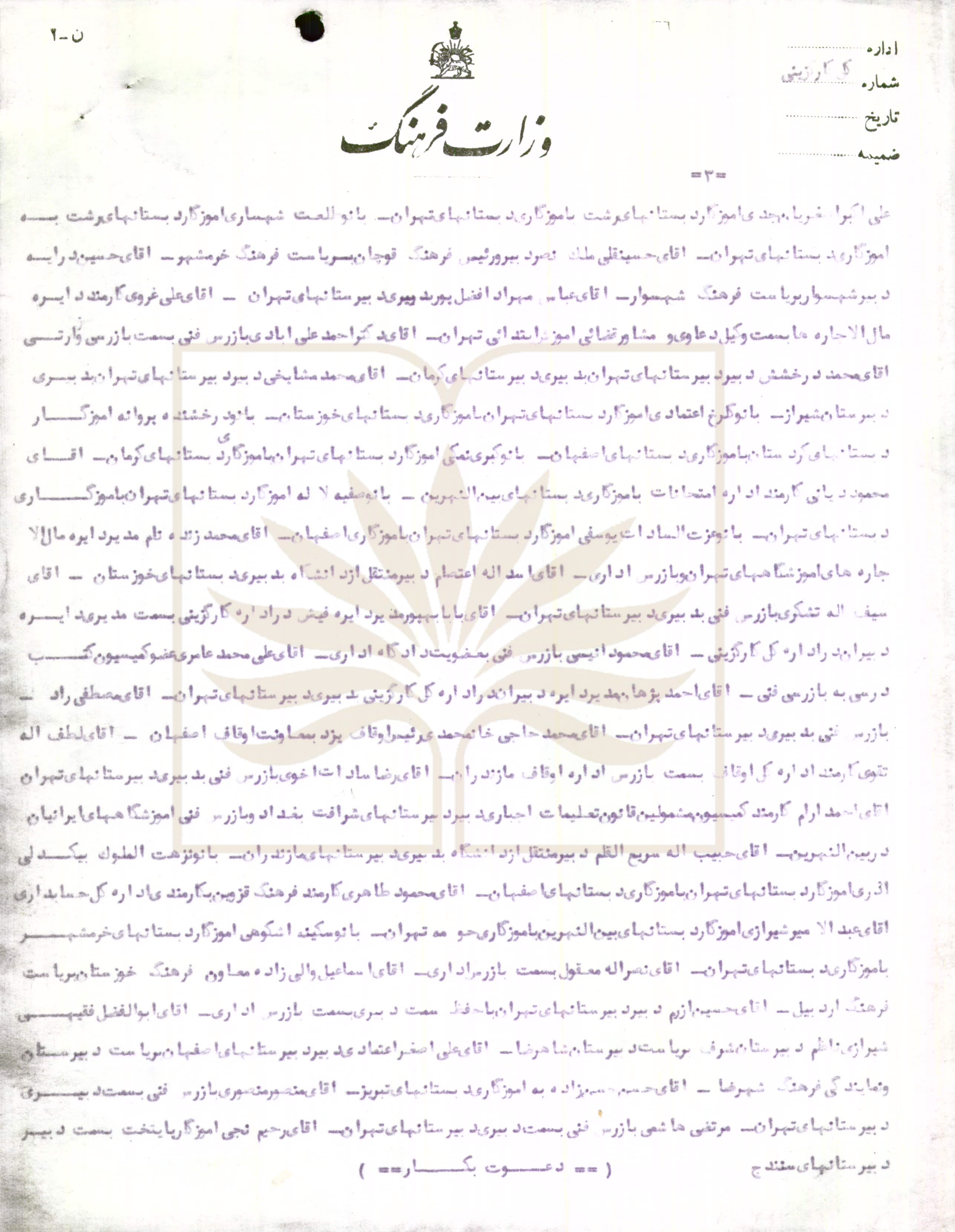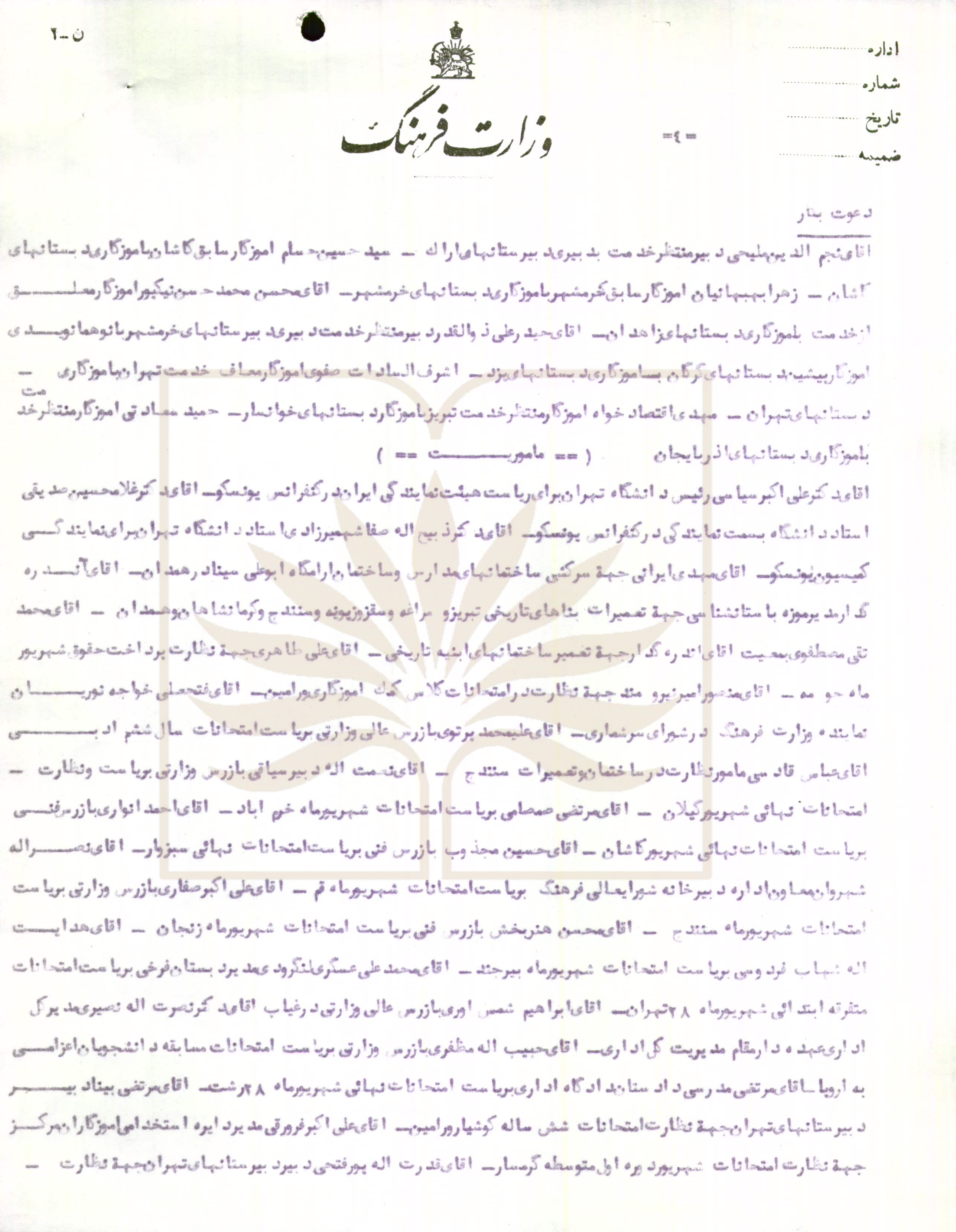 بخشنامه ی وزارت فرهنگ، مبنی بر اعلام عمده ترين وقايع شهريور 1328 در اين وزارت خانه