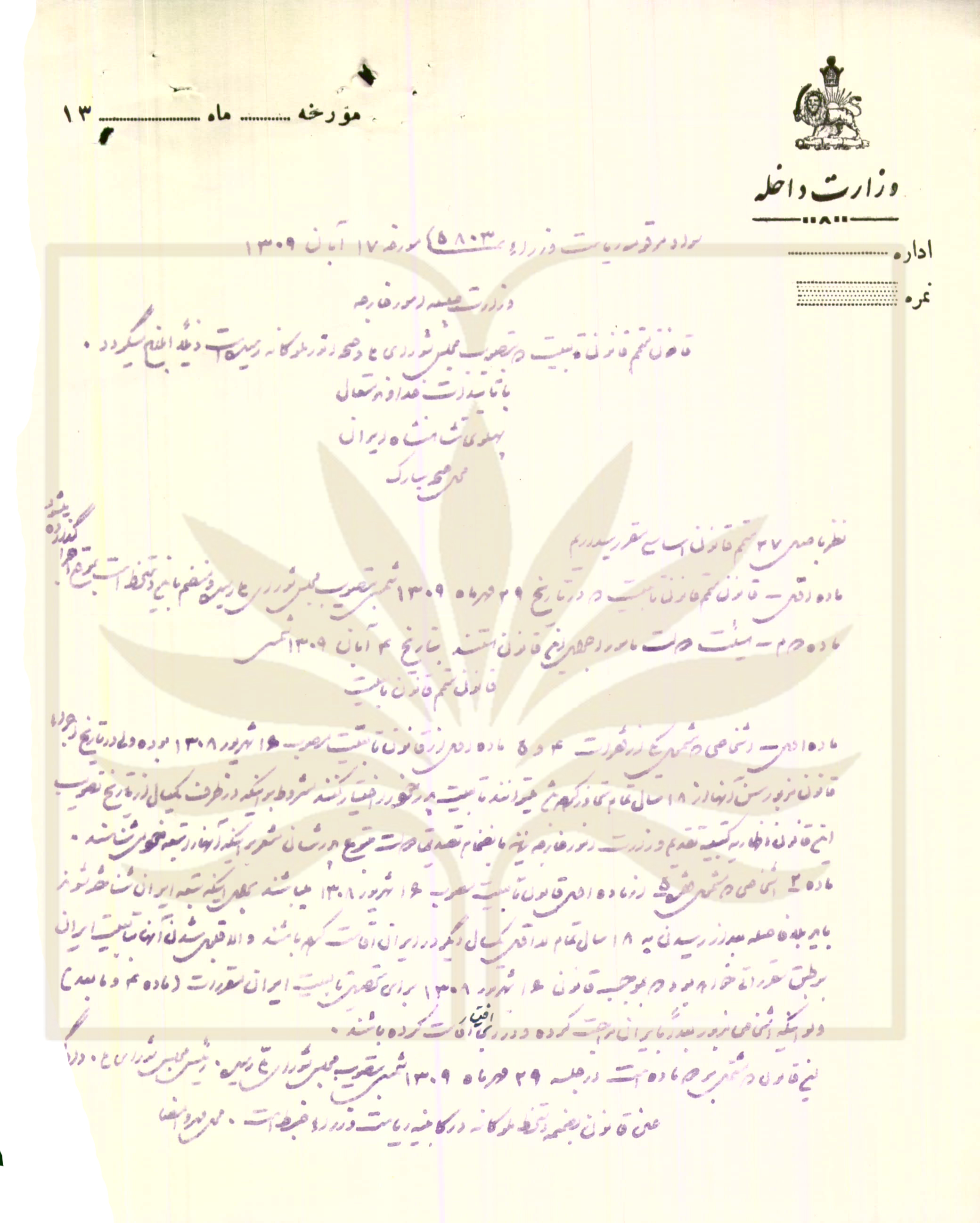 - تاریخ سند : ۱۳۰۹/۰۸/۱۷