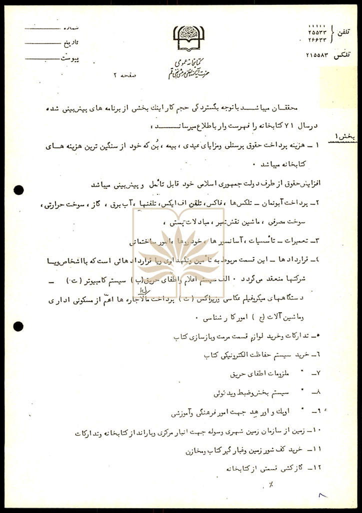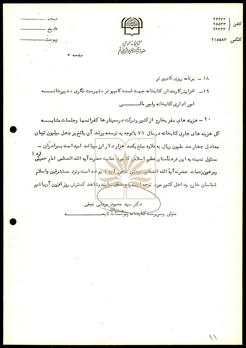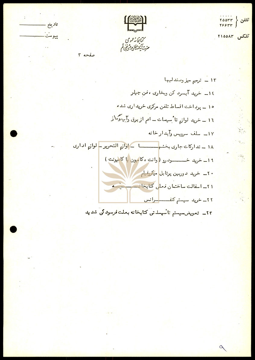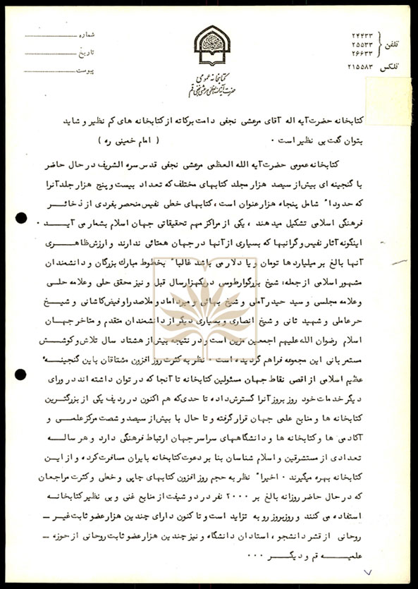 - عنوان سند : درخواست رفع مشکلات احداث کتابخانه عمومی آیت الله مرعشی نجفی