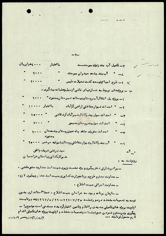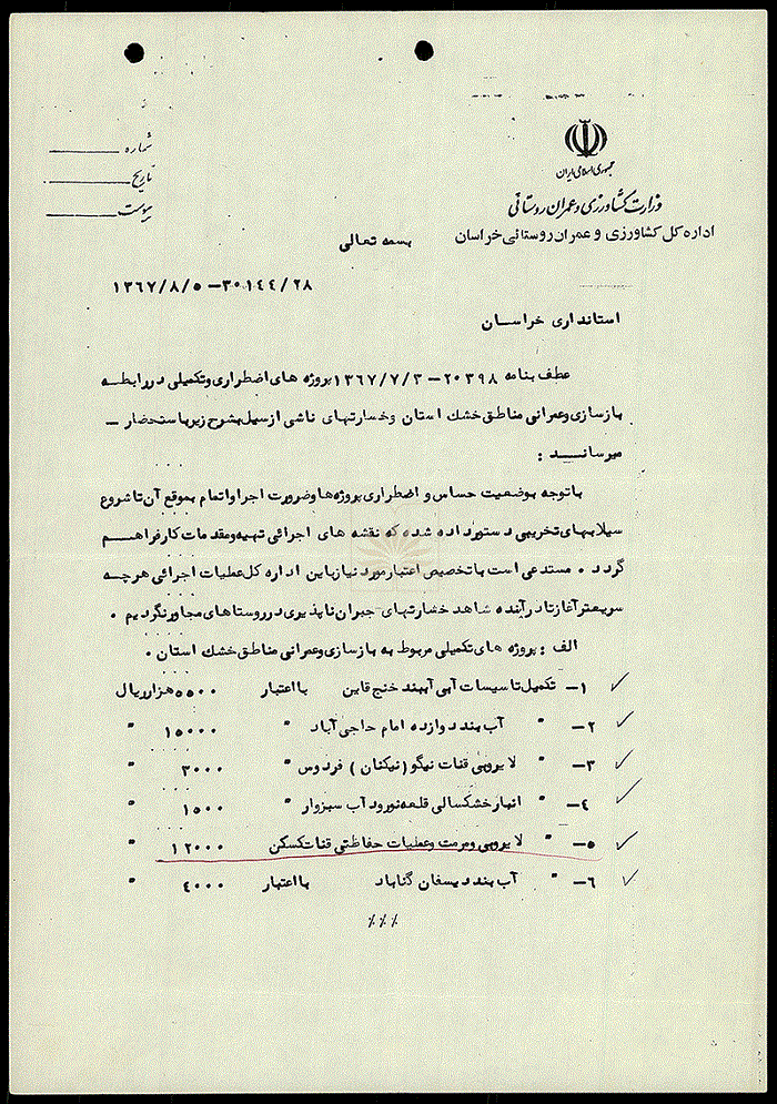 - عنوان سند : درخواست اعتبار برای پروژه های مربوط به بازسازی و عمران مناطق خشک استان خراسان