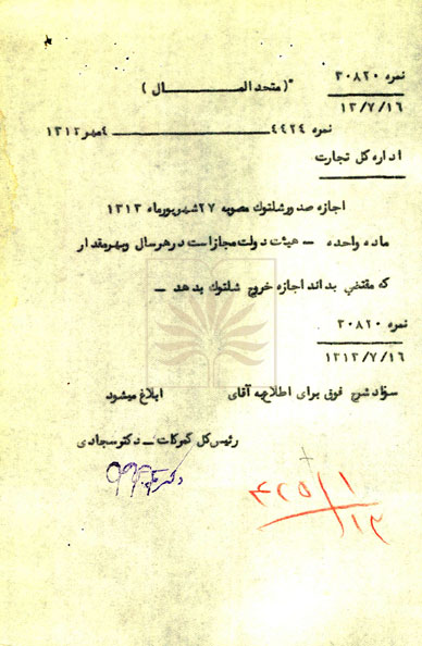 شرح سند : این سند بخشنامه گمرکات است که مصوبه هیئت دولت مبنی بر صدور شلتوک در هر سال به هر مقدار را ابلاغ کرده است.