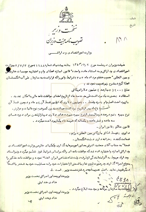 - عنوان سند : ابلاغ تصویب اعطای وام به انگلستان