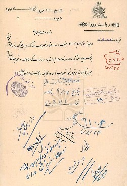 شرح سند: اين سند نامه ای از طرف ریاست وزراء به وزارت مالیه است که در آن خواسته شد که ماهی یکصد تومان از حقوق پرنس دادیان که سال ها در خدمت ایران بوده و فوت کرده بطور پانسیون در حق همسرش برقرار شود.