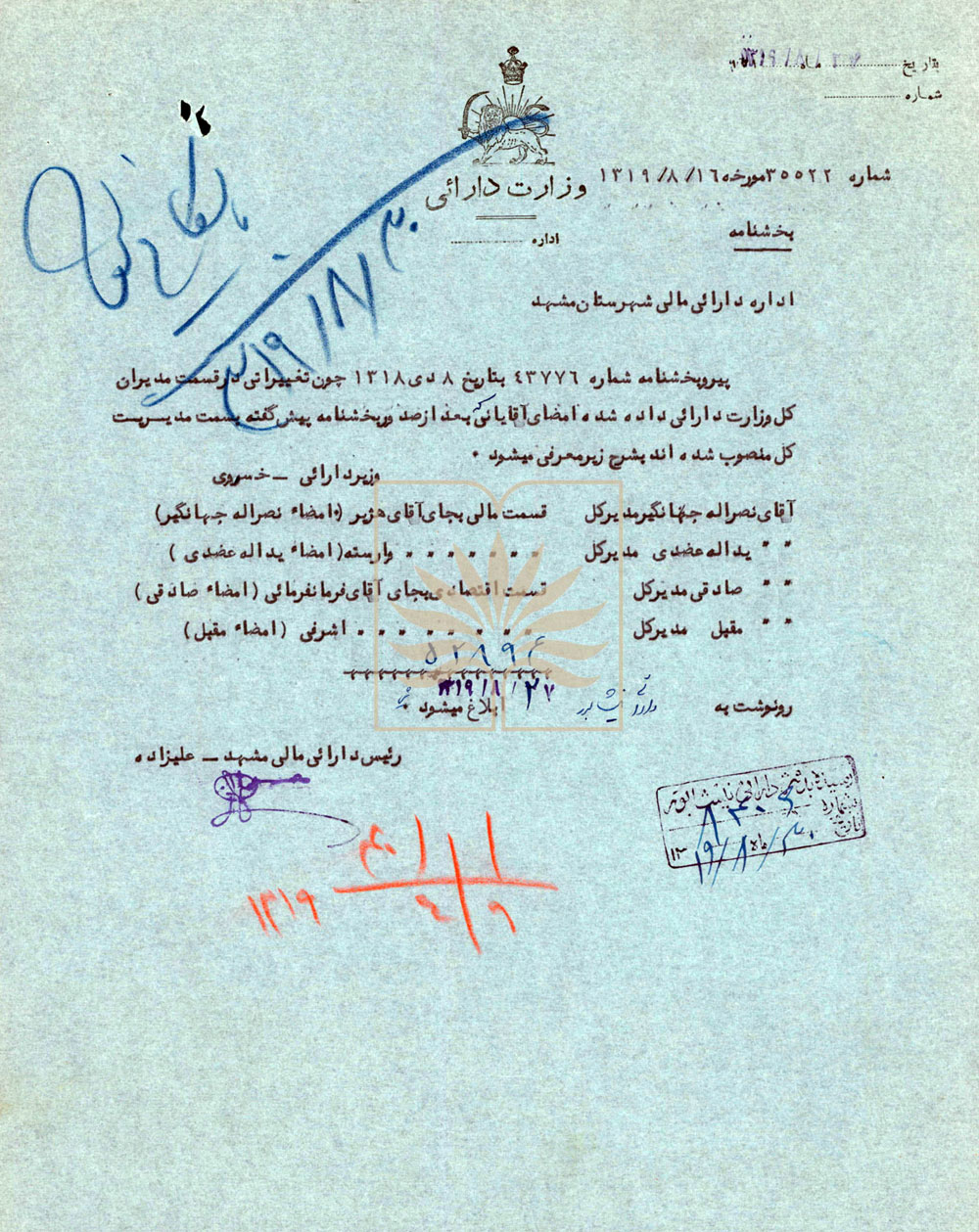 - تاریخ سند : ۱۳۱۹/۰۸/۱۶