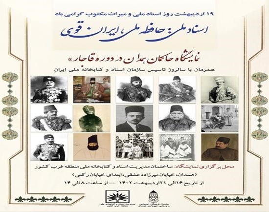 همزمان با هفته گرامیداشت اسناد ملی و میراث مکتوب که در سال جاری به عنوان «اسناد ملی: حافظه ملی، ایران قوی» نامگذاری شده است نمایشگاه حکمرانان همدان در دوره قاجار، به همت مرکز اسناد همدان و با همکاری سازمان فرهنگی، اجتماعی و ورزشی شهرداری همدان افتتاح شد.