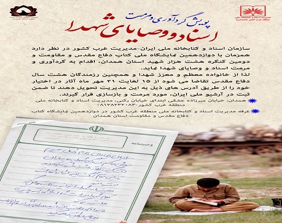 پویش گردآوری و مرمت اسناد و وصایای شهدای استان همدان برگزار می شود