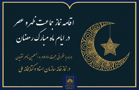 به گزارش روابط عمومی سازمان اسناد و کتابخانه ملی،ضمن تبریک فرارسیدن ماه مبارک رمضان و آرزوی قبولی طاعات و عبادات همکاران و پژوهشگران گرامی، به اطلاع میرساند نماز جماعت ظهر و عصر در ایام ماه مبارک رمضان در نمازخانه سازمان اقامه میشود و حجت الاسلام و المسلمین ناصر نقویان نیز بهعنوان سخنران در این برنامه حضور خواهند داشت.
