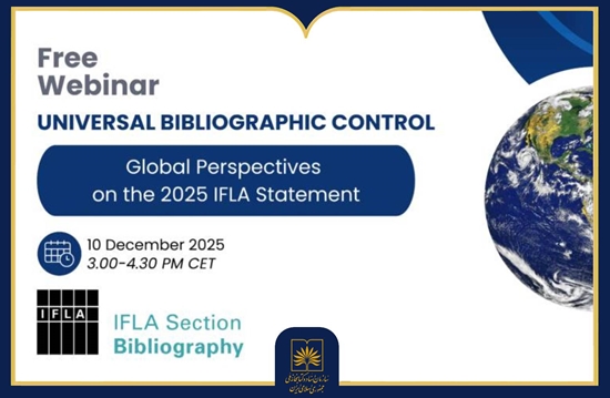 وبینار بین‌المللی «کنترل کتابشناختی جهانی: دیدگاه‌های جهانی درباره بیانیه ۲۰۲۵ ایفلا» روز چهارشنبه ۱۹ آذر ۱۴۰۴ (۱۰ دسامبر ۲۰۲۵) به صورت آنلاین و با امکان ثبت‌نام رایگان برگزار می‌شود و سعیده اکبری داریان، عضو هیئت علمی سازمان اسناد و کتابخانه ملی ایران، در این رویداد به عنوان عضو پنل حضور دارد.