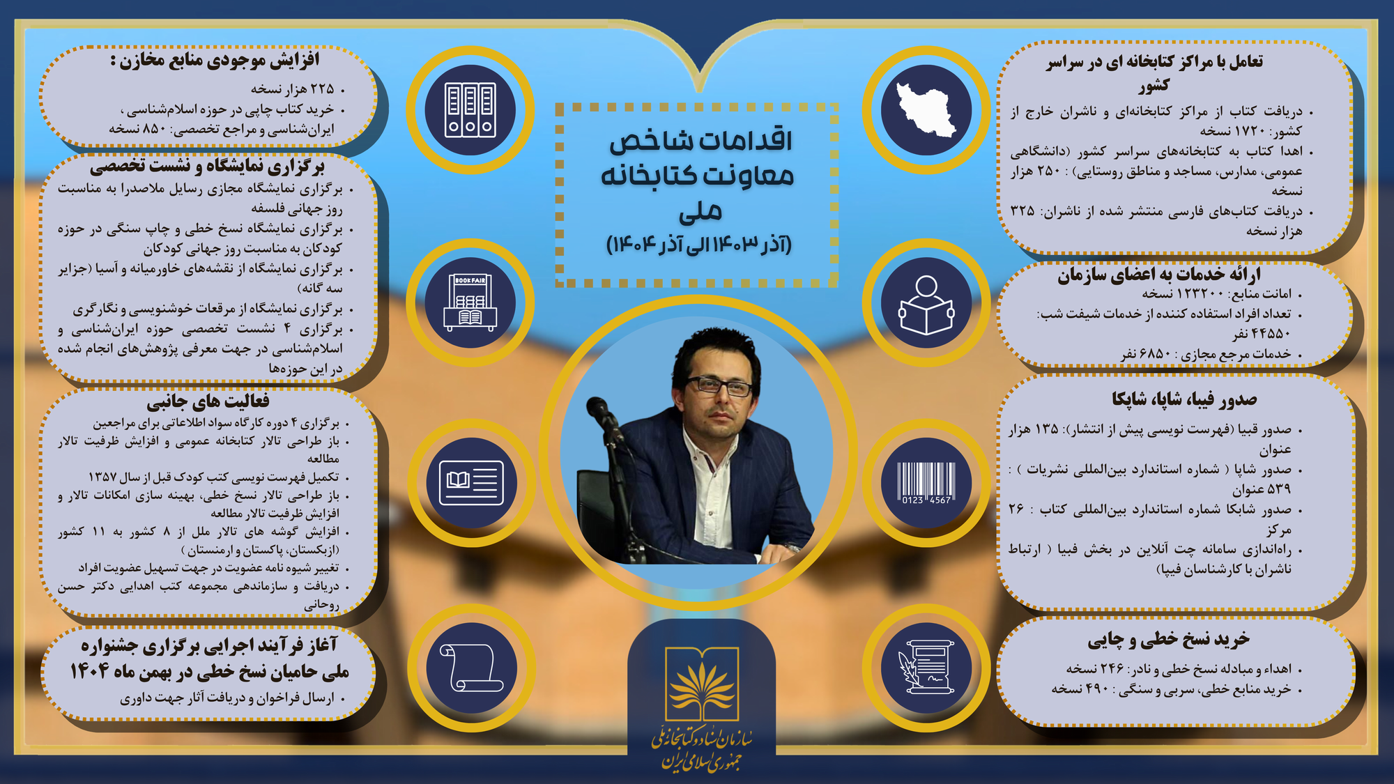 مروری بر برنامهها و خدمات معاونت کتابخانه ملی از آذر ۱۴۰۳ تا آذر ۱۴۰۴