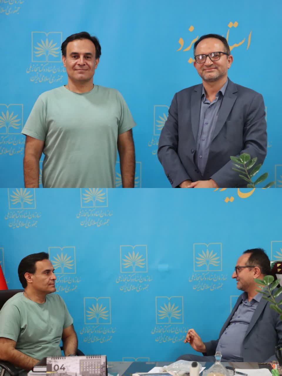 دیدار حسین دهقان از خیرین استان با سعید زارع مدیر کل اسناد و کتابخانه ملی استان یزد در محل این سازمان