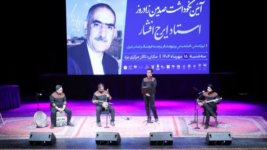 به گزارش روابط عمومی سازمان اسناد و کتابخانه ملی یزد؛ در این مراسم حاضرین با تأکید بر نقش بی‌بدیل استاد افشار در احیای فرهنگ و تاریخ ایران‌زمین، از خدمات ارزنده او در حوزه‌های کتاب‌شناسی، نسخه‌پژوهی و تأسیس نهادهای علمی مانند کتابخانه مرکزی دانشگاه تهران تجلیل کردند. این آیین با بیش از ۱۰ برنامه مختلف در قالب «هفته پاسداشت ایرج افشار» در نقاط مختلف استان یزد اجرا شد. از جمله این برنامه‌ها می‌توان به برگزاری مسابقات ادبی و فرهنگی، نشست‌های تخصصی، برنامه صد کتاب ماندگار قرن و کتاب یادگارهای یزد اشاره کرد. همچنین در حاشیه این مراسم از سند هویتی استاد ایرج افشار و پوستر مسابقه کتابخوانی به ایشان رونمایی و سخنرانی اساتید و کارگاه‌های علمی و پژوهشی از دیگر برنامه های این آیین بود. ایرج افشار پژوهشگر برجسته حوزه فرهنگ و تاریخ ایران، ایران‌شناس، کتاب‌شناس، کتابدار، نویسنده، نسخه‌پژوه و استاد دانشگاه، از چهره‌های تأثیرگذار در عرصه فرهنگ و هنر ایران به شمار می‌رود. استاد ایرج افشار فرزند «محمود افشار یزدی» از دولتمردان، نویسندگان، روزنامه‌نگاران و شاعران معروف ایران بود.