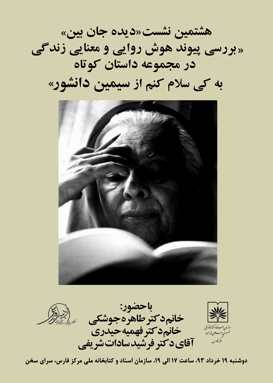 هشتمین نشست «دیده جان بین » در مورخ 19 خرداد 1393 به «بررسی پیوند هوش روایی و معنای زندگی در مجموعه داستان کوتاه به کی سلام کنم از سیمین دانشور» اختصاص داشت.