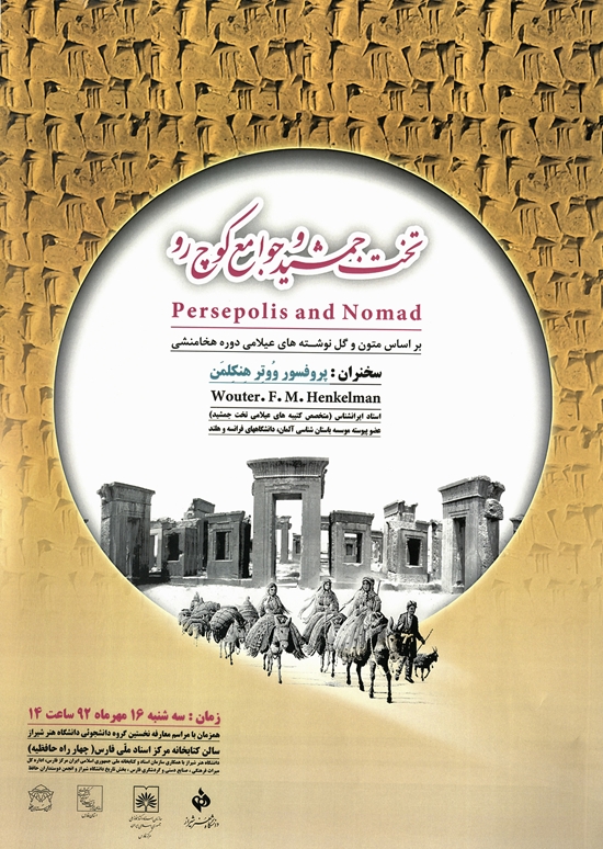 به مناسبت نخستین سال پذیرش دانشجو در دانشگاه هنر شیراز و روز معارفه رسمی آنها پرفسور هنکلمن (استاد ایران­شناسی) در موضوع "تخت جمشید و جوامع کوچ ­رو" سخنرانی می­کند.
